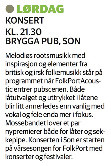 BRygga Pub Son AKustisk pubkonsert FolkPort folkrock sekkepipe